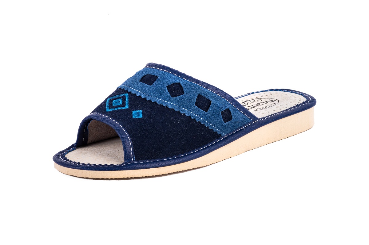 Odkryte haftowane pantofle damskie - to stylowa propozycja dla Pań, które szukają alternatywy dla syntetycznych materiałów. Miękka skóra – klapki damskie wykonane są ze 100 % wysokogatunkowej skóry naturalnej.