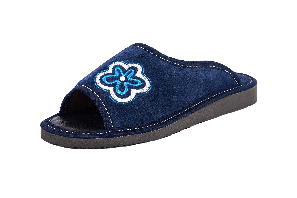 Pantofle damskie wykonane są ze 100 % naturalnej skóry czyniąc je zarówno wytrzymałe jak również eleganckie. Wierzch pantofla wykonany ze skóry zamszowej. Skórzana wkładka jest przyjemna w dotyku oraz utrzymuje Twoje stopy w świeżości w wiosnę i lato.