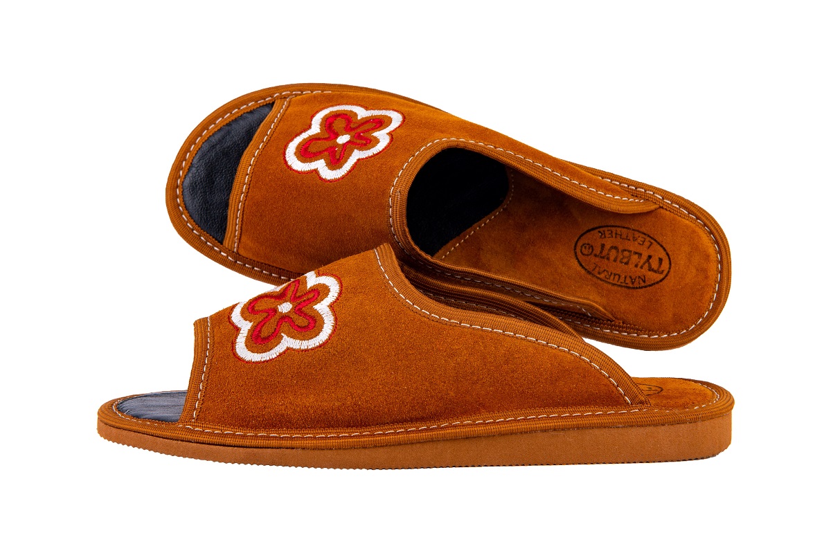 Pantofle damskie wykonane są ze 100 % naturalnej skóry czyniąc je zarówno wytrzymałe jak również eleganckie. Wierzch pantofla wykonany ze skóry zamszowej. Skórzana wkładka jest przyjemna w dotyku oraz utrzymuje Twoje stopy w świeżości w wiosnę i lato.