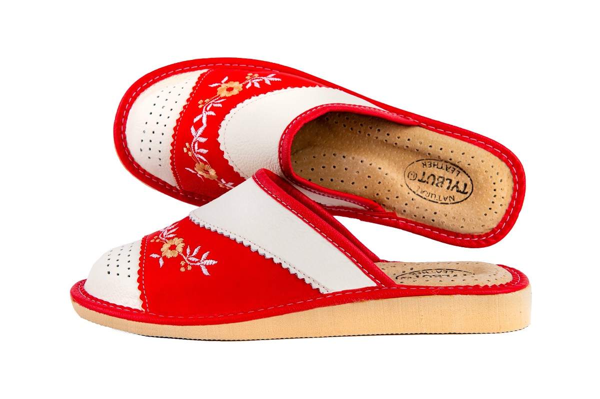 Zakryte haftowane pantofle damskie - to stylowa propozycja dla Pań, które szukają alternatywy dla syntetycznych materiałów. Miękka skóra – klapki damskie wykonane są ze 100 % wysokogatunkowej skóry naturalnej.