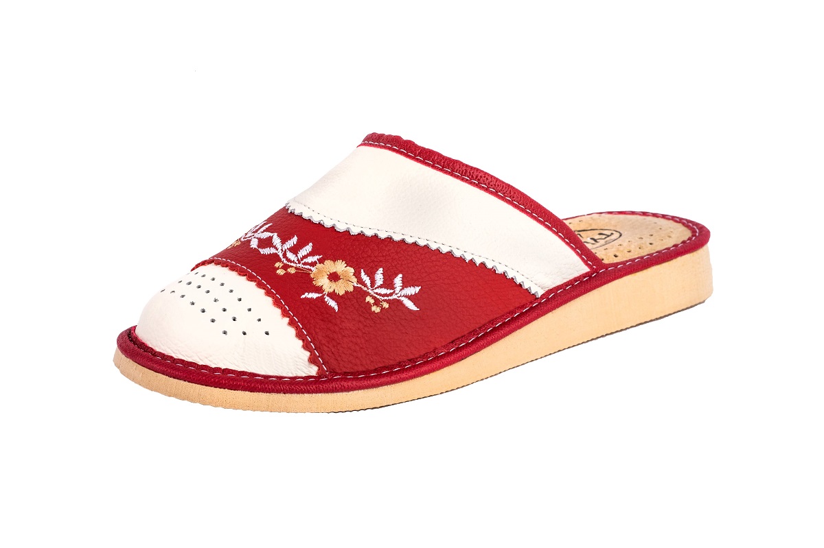 Zakryte haftowane pantofle damskie - to stylowa propozycja dla Pań, które szukają alternatywy dla syntetycznych materiałów. Miękka skóra – klapki damskie wykonane są ze 100 % wysokogatunkowej skóry naturalnej.
