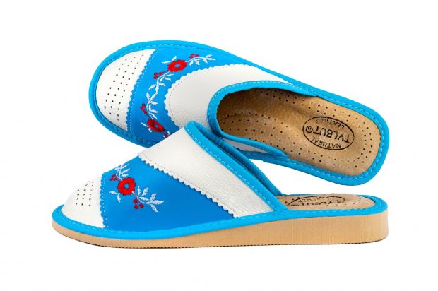 Zakryte haftowane pantofle damskie - to stylowa propozycja dla Pań, które szukają alternatywy dla syntetycznych materiałów. Miękka skóra – klapki damskie wykonane są ze 100 % wysokogatunkowej skóry naturalnej.