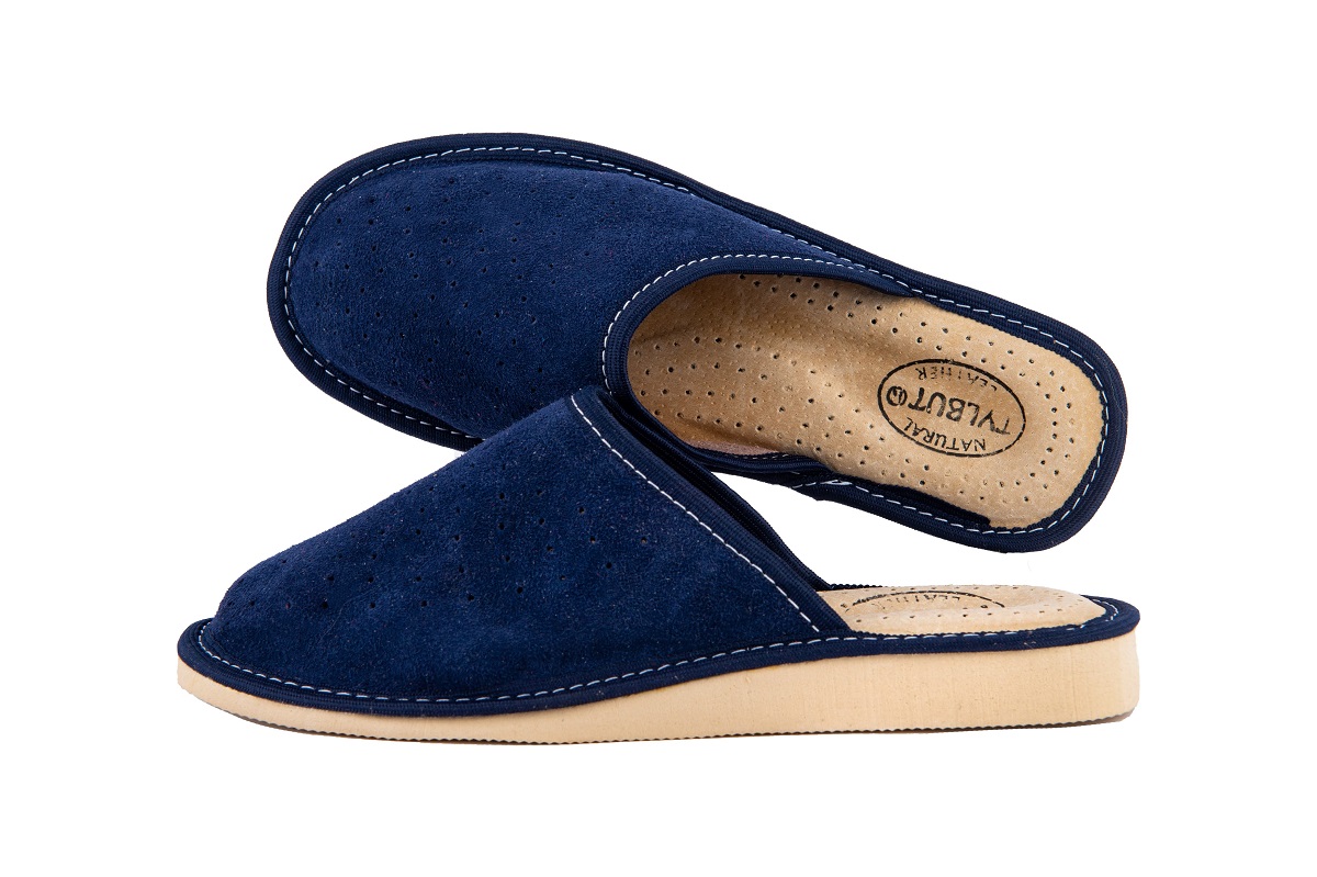 Pantofle damskie wykonane są ze 100 % naturalnej skóry czyniąc je zarówno wytrzymałe jak również eleganckie. Wierzch pantofla wykonany ze skóry zamszowej. Skórzana wkładka jest przyjemna w dotyku oraz utrzymuje Twoje stopy w świeżości w wiosnę i lato.