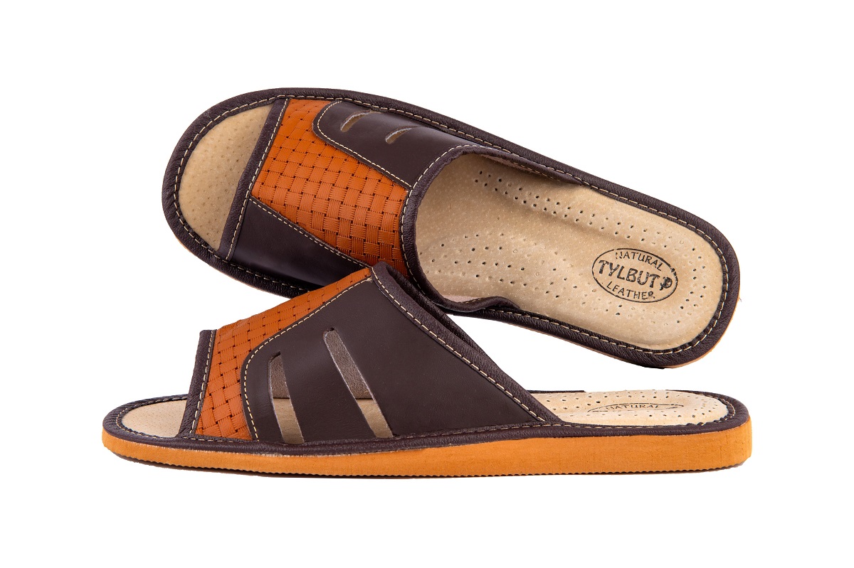 Odkryte tłoczone pantofle męskie- oryginalny styl wyrażony przez tłoczenie inspirowane motywem geometrycznym. Kapcie wykonane z wysoko gatunkowej skóry naturalnej czyniąc je zarówno wytrzymałe jak również eleganckie.