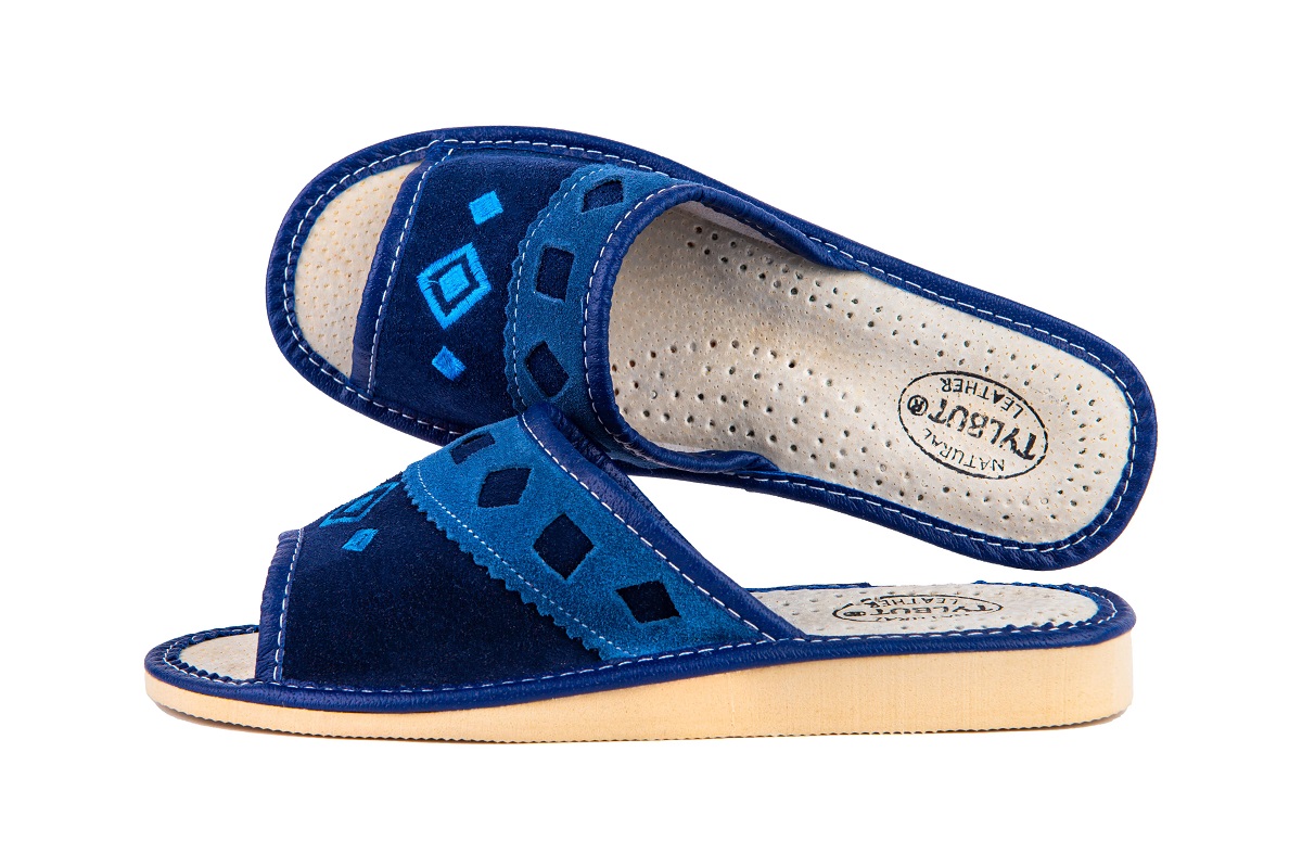 Odkryte haftowane pantofle damskie - to stylowa propozycja dla Pań, które szukają alternatywy dla syntetycznych materiałów. Miękka skóra – klapki damskie wykonane są ze 100 % wysokogatunkowej skóry naturalnej.