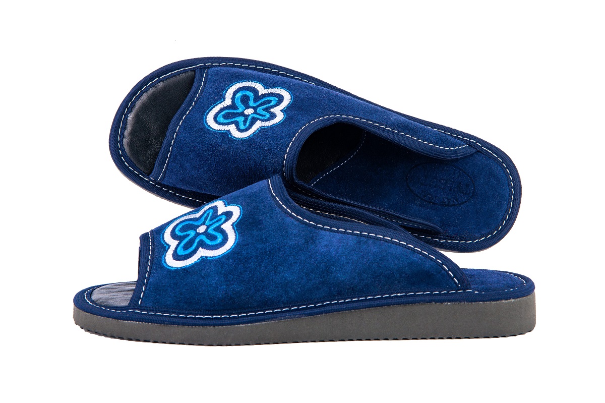 Pantofle damskie wykonane są ze 100 % naturalnej skóry czyniąc je zarówno wytrzymałe jak również eleganckie. Wierzch pantofla wykonany ze skóry zamszowej. Skórzana wkładka jest przyjemna w dotyku oraz utrzymuje Twoje stopy w świeżości w wiosnę i lato.