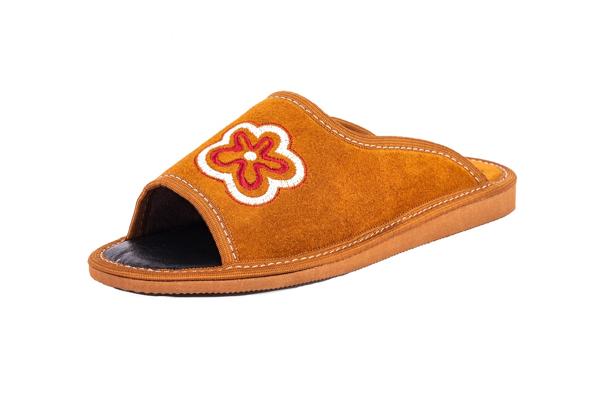 Pantofle damskie wykonane są ze 100 % naturalnej skóry czyniąc je zarówno wytrzymałe jak również eleganckie. Wierzch pantofla wykonany ze skóry zamszowej. Skórzana wkładka jest przyjemna w dotyku oraz utrzymuje Twoje stopy w świeżości w wiosnę i lato.
