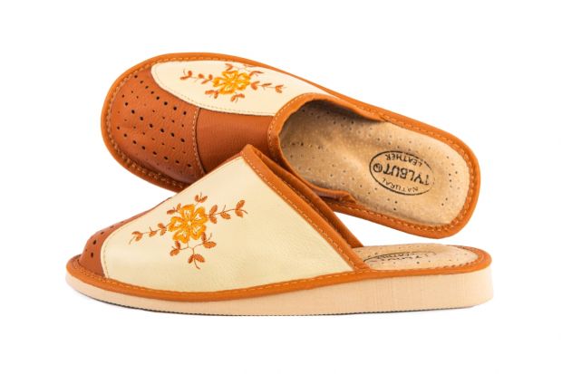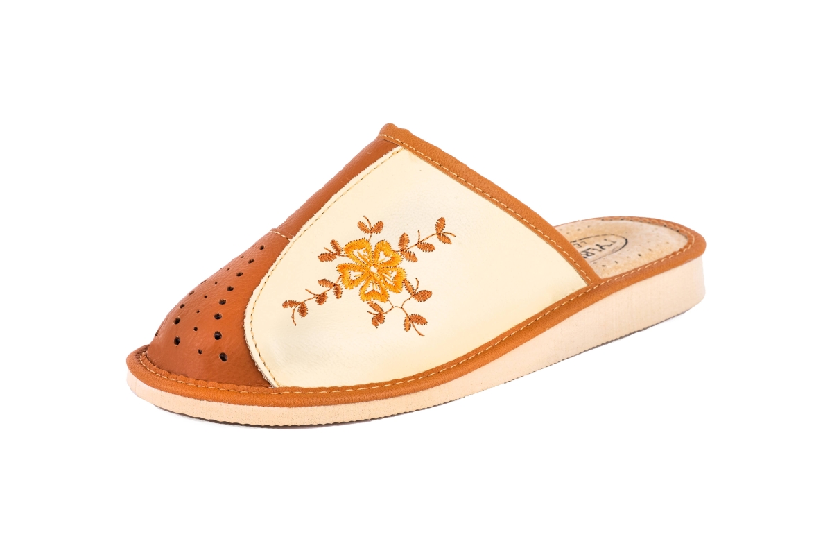 Zakryte haftowane pantofle damskie - to stylowa propozycja dla Pań, które szukają alternatywy dla syntetycznych materiałów. Miękka skóra – klapki damskie wykonane są ze 100 % wysokogatunkowej skóry naturalnej.