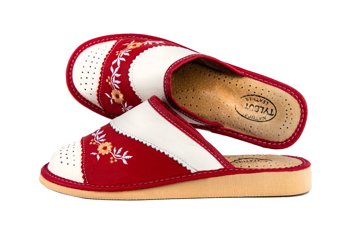 Zakryte haftowane pantofle damskie - to stylowa propozycja dla Pań, które szukają alternatywy dla syntetycznych materiałów. Miękka skóra – klapki damskie wykonane są ze 100 % wysokogatunkowej skóry naturalnej.
