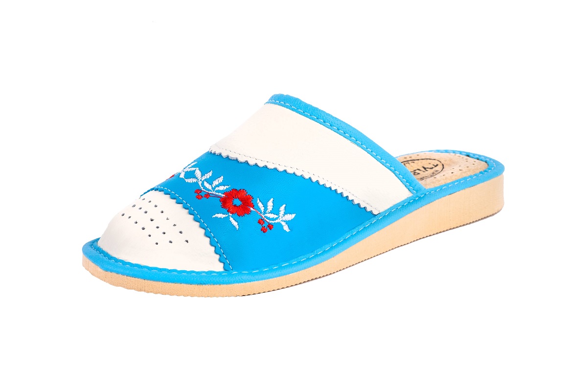 Zakryte haftowane pantofle damskie - to stylowa propozycja dla Pań, które szukają alternatywy dla syntetycznych materiałów. Miękka skóra – klapki damskie wykonane są ze 100 % wysokogatunkowej skóry naturalnej.