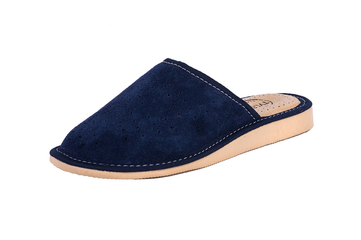 Pantofle damskie wykonane są ze 100 % naturalnej skóry czyniąc je zarówno wytrzymałe jak również eleganckie. Wierzch pantofla wykonany ze skóry zamszowej. Skórzana wkładka jest przyjemna w dotyku oraz utrzymuje Twoje stopy w świeżości w wiosnę i lato.