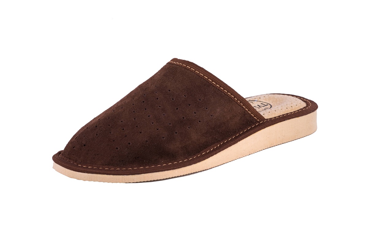 Pantofle damskie wykonane są ze 100 % naturalnej skóry czyniąc je zarówno wytrzymałe jak również eleganckie. Wierzch pantofla wykonany ze skóry zamszowej. Skórzana wkładka jest przyjemna w dotyku oraz utrzymuje Twoje stopy w świeżości w wiosnę i lato.