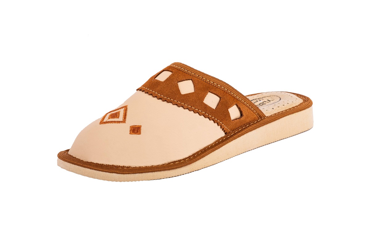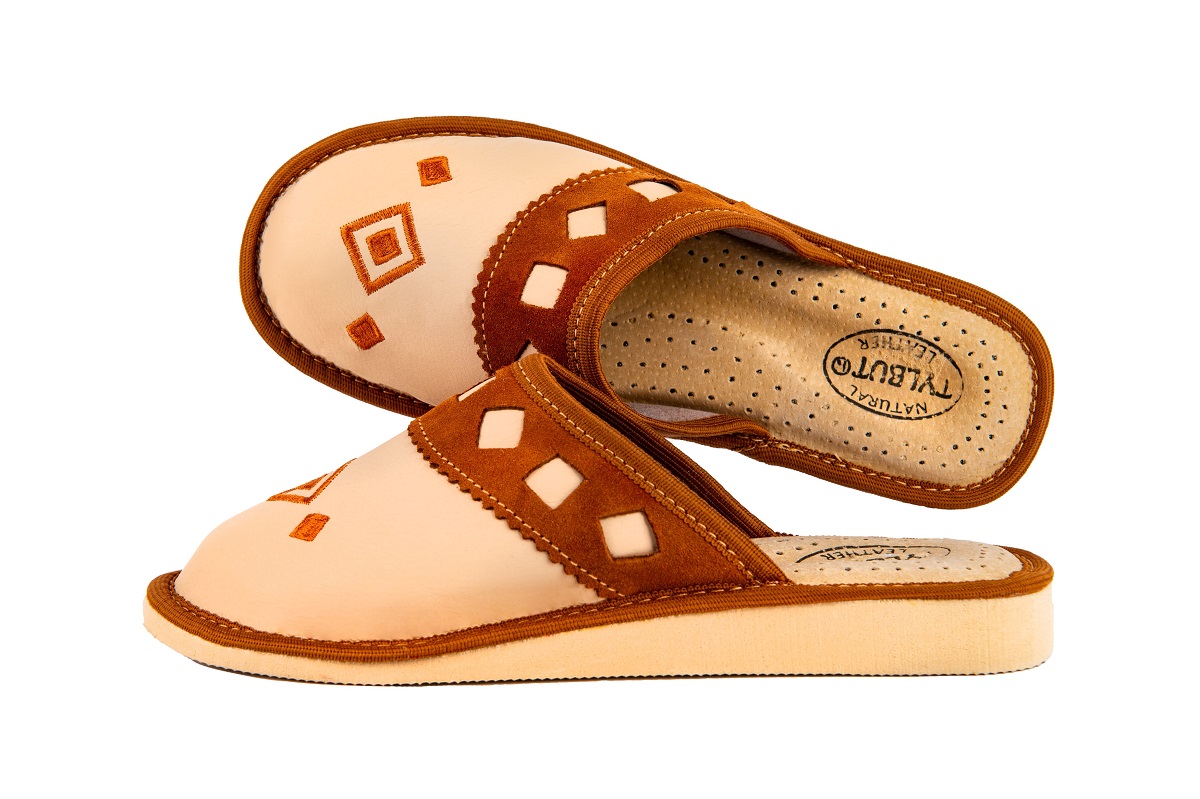 Zakryte haftowane pantofle damskie - to stylowa propozycja dla Pań, które szukają alternatywy dla syntetycznych materiałów. Miękka skóra – klapki damskie wykonane są ze 100 % wysokogatunkowej skóry naturalnej.