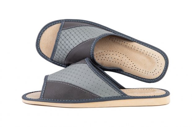 Odkryte tłoczone pantofle męskie- oryginalny styl wyrażony przez tłoczenie inspirowane motywem geometrycznym. Kapcie wykonane z wysoko gatunkowej skóry naturalnej czyniąc je zarówno wytrzymałe jak również eleganckie.