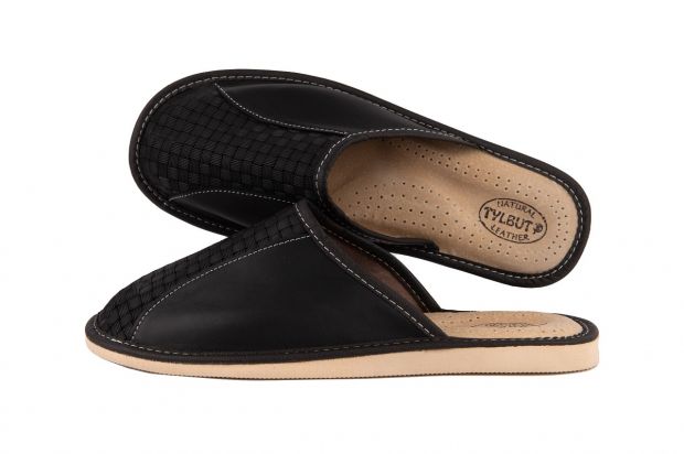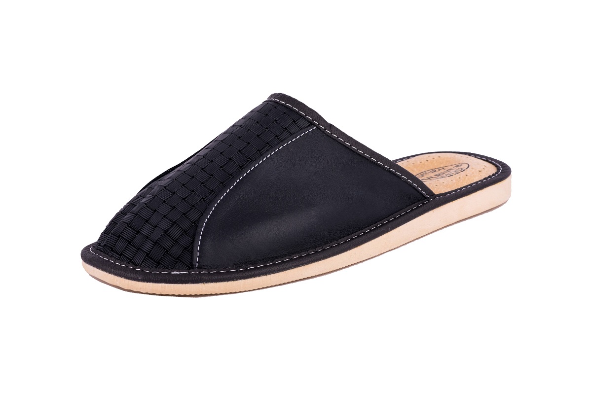 Zakryte tłoczone pantofle męskie- oryginalny styl wyrażony przez tłoczenie inspirowane motywem geometrycznym. Kapcie wykonane z wysoko gatunkowej skóry naturalnej czyniąc je zarówno wytrzymałe jak również eleganckie.