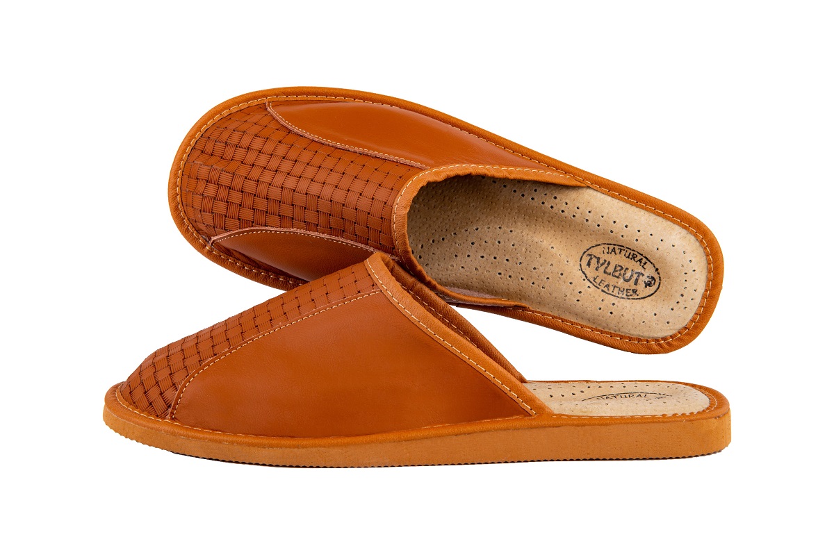 Zakryte tłoczone pantofle męskie- oryginalny styl wyrażony przez tłoczenie inspirowane motywem geometrycznym. Kapcie wykonane z wysoko gatunkowej skóry naturalnej czyniąc je zarówno wytrzymałe jak również eleganckie.